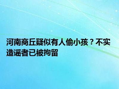 河南商丘疑似有人偷小孩?不实 造谣者已被拘留