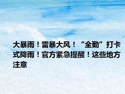 大暴雨!雷暴大风!“全勤”打卡式降雨!官方紧急提醒!这些地方注意